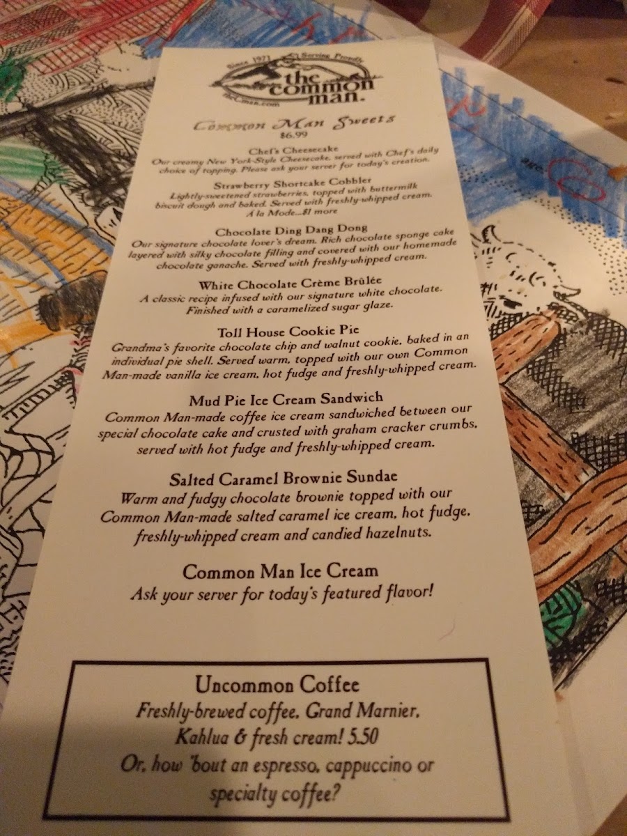 Introducing the menu at The Common Man Windham is an experience filled with warmth and hospitality. Located in charming Windham, NH, this restaurant prides itself on delivering extraordinary food and service that resonates with every guest. The menu highlights a diverse range of dishes, praised by patrons like Sue Riddle and Mike Mayes, who celebrated their outstanding service and delectable meals. You can indulge in delightful offerings, from the rich Mexican street corn dip to the sweetly satisfying Nantucket pie, each dish crafted to perfection. Guests have often remarked on the dedicated staff, including standout servers like Paul and Angela, who go above and beyond to make every visit memorable. With its unique décor and inviting atmosphere, The Common Man Windham is not just a restaurant; it's a gathering place where good food and community flourish.
